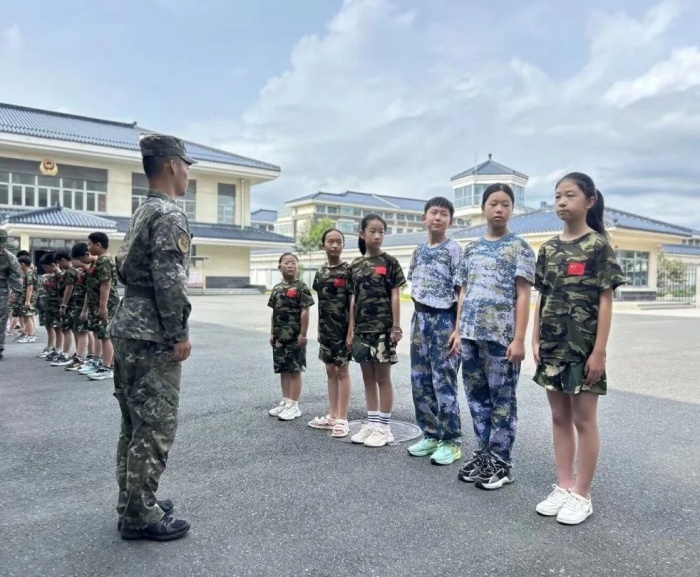 紧接着,孩子们兴奋地加入较为简单安全的队列训练。虽然动作略显稚嫩,但他们个个挺直腰板,神情专注,努力模仿着军人的姿态,汗水渐渐浸湿了衣衫,却没人喊累。这一刻,“令行禁止”、“步调一致”不再是抽象的概念。孩子们在亲身体验中感受到,强大的军队源于铁一般的纪律和团结如一的集体力量。 这铿锵的步伐,踏出的正是国家安全的基石。