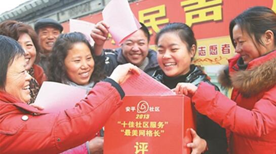 在此基础上,按照“服务时间全天候、服务内容全方位、服务对象全覆盖”的原则,实行网格化管理,将社区划分一级网格9个,二级网格20个,逐级配备网格服务队伍,社区党员、社区工作者、社区志愿者全体参与,同步整合政策咨询、投诉求助等民生服务,构筑起重心下移、资源下移的安平社区为民服务网络。此外,社区成立工作站,由专门人员具体负责行政化事务,剩下的所有工作人员全部深入居民家中,走访民情。