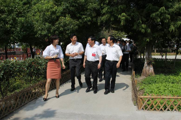 2011年9月14日上午,在省委领导李云峰、何权等的带领下,全省各市、县领导及相关部门负责同志来到新庄街道澄渎村实地考察城乡统筹发展及生态文明建设情况。