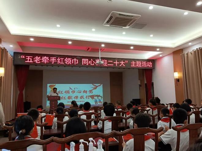 为进一步发挥广大老干部、老教师、老党员五老志愿者在教育、引导、关爱、保护青少年方面的独特优势和重要作用。和桥镇南新社区开展“五老牵手红领巾·同心喜迎二十大”主题活动,邀请老党员面向少先队员讲述党史、国史故事,进行爱国主义教育和革命传统教育,引领少年儿童听党话、跟党走。