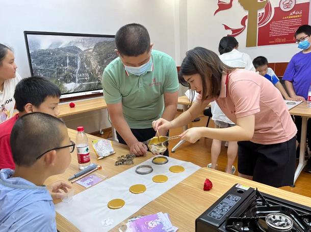 8月3日下午,土城社区联合宜兴市博物馆开展“舌尖上的非遗——碰糖制作”活动。20名少年儿童及家长参加了本次活动。