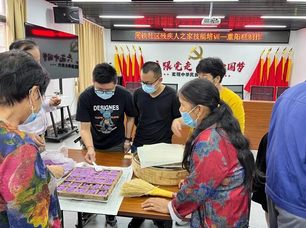在举国欢庆中华人民共和国成立73周年之际,恰逢九九重阳节,为进一步开展爱国主义教育,大力弘扬中华民族传统美德,倡导关爱特殊群体新风尚,营造欢乐和谐的节日氛围,周铁镇周铁社区残疾人之家开展重阳糕制作技能培训活动。