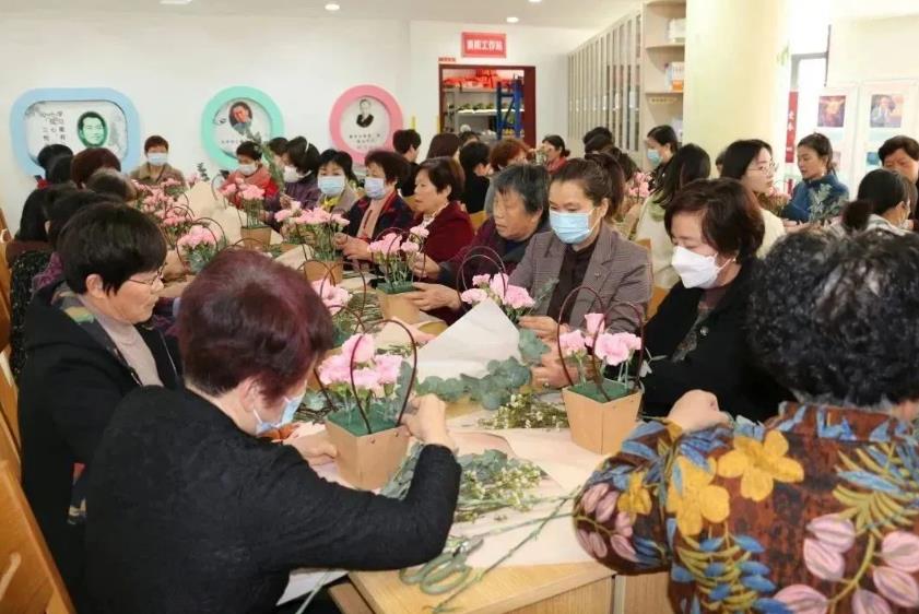 2023年3月7日,在“三八”国际妇女节即将到来之际,谈家干举行了“心生美好  如花绽放”庆三八妇女节插花活动,邀请辖区内居民、志愿者共同参与。
