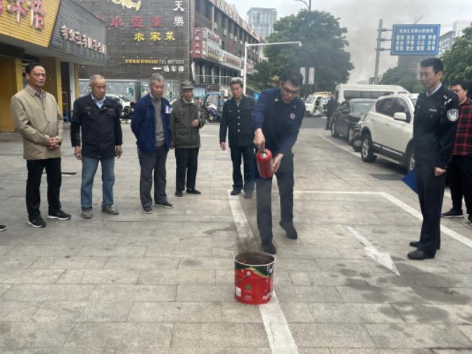 讲解之后,消防员还手把手地教保安保洁人员如何使用灭火器灭火,如何连接消防栓,以及水枪的操作方式。