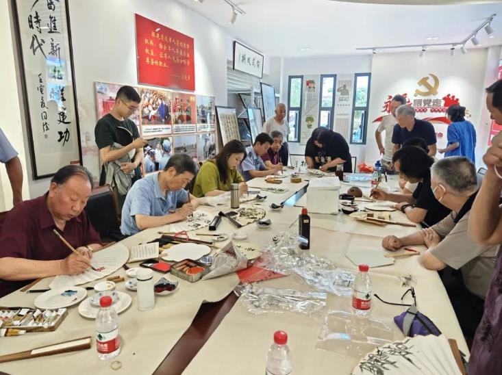 “七一”建党节,为纪念党的生日,进一步增强党组织的凝聚力和战斗力,丁蜀镇退役军人服务中心联合湖光社区、丁山监狱离退休干工党总支、丁山监狱团委、宜陶芳华志愿服务队开展了“团扇寄红心 翰墨颂华章”活动,一起通过书画的形式,描绘中国共产党百年来的辉煌成就,赞颂中国特色社会主义制度优越性,讴歌蓬勃发展的伟大时代。