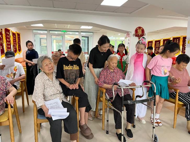 室外温度33℃,比温度更火热的是孩子们的心。白宕社区小哥白尼爱心暑托班的孩子们走进九如城康养中心,舞蹈、歌曲、乐器、朗诵齐上阵,为老人们带来一片清凉。
