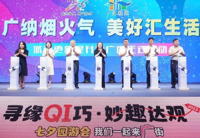 广纳烟火气,美好汇生活。8月22日,“寻缘QI巧 妙趣达观”屺亭街道七夕节主题活动暨社企党建联盟共建和广街启动仪式在广汇社区口袋公园举办。