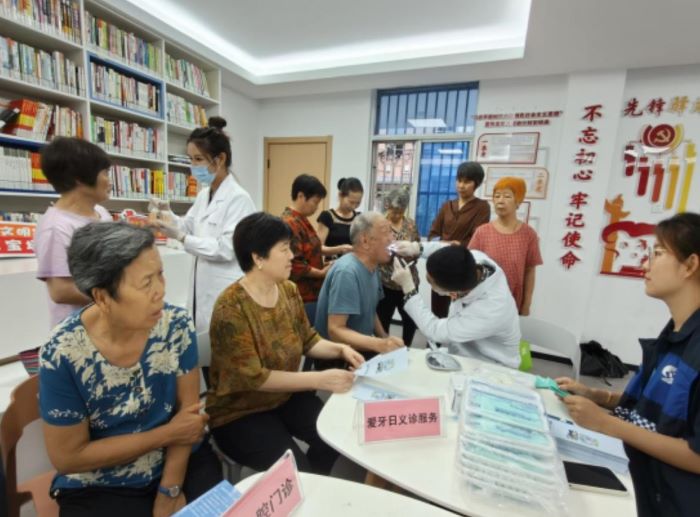 活动现场,医护人员为大家开展了口腔健康讲座,讲解了各类牙齿疾病发生的原因、症状与预防手段、日常牙齿清洁、正确的刷牙方法以及如何保护牙齿等相关知识,尤其对老年人提出的各类口腔疾病的预防、诊治、愈后等问题,给出了耐心的解答。医护人员还现场为居民免费检查牙齿,就居民们咨询的各类口腔健康问题,在饮食、生活方面给予合理化建议,并倡导大家注意牙齿和口腔的日常保健,如果发生口腔疾病一定要重视并到正规医院及时就医。