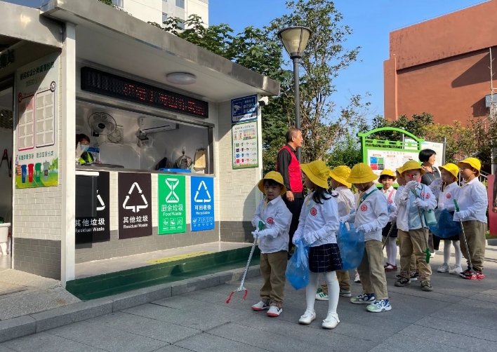 活动现场,志愿者们带着幼儿园的小朋友们和辖区内的居民观看了垃圾分类车清运的过程,并发放了垃圾分类的宣传手册,志愿者们详细解释了各类垃圾的分类方法和注意事项。同时,现场还设置了垃圾分类的互动游戏环节,让大家更直观地了解和掌握垃圾分类的知识,活动中,英仁幼儿园的小朋友们拿起垃圾夹,垃圾袋,在党员志愿者和网格员带领下,认真地在小区内分拣垃圾。他们将塑料瓶、纸张、废电池等可回收垃圾分别放入对应的垃圾桶中。对于不确定如何分类的垃圾,他们还会主动询问老师或者志愿者,积极探索和学习。