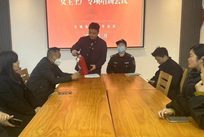 为深入学习贯彻习近平总书记关于安全生产重要指示精神,普及消防安全知识,提高社区九小场所消防安全意识,有效预防和减少辖区安全事故的发生,3月27日,宜城街道新华社区组织开展主题为“安全生产责任在肩”安全生产专项培训。