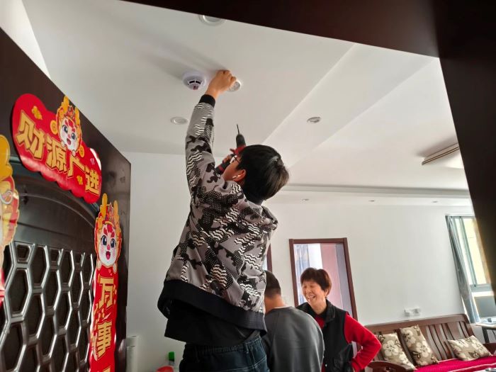 每到一户,网格员都耐心地为老人们详细讲解报警器的功能、使用方法和注意事项,并进行安装。