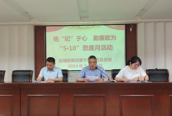 为深入学习贯彻二十届中央纪委三次全会精神,全面落实中央、省、无锡和宜兴市党纪学习教育工作部署,引导社区党员干部进一步增强政治定力、纪律定力、道德定力、抵腐定力,谈家干社区党总支于2024年5月10日开展“5•10”思廉月活动。