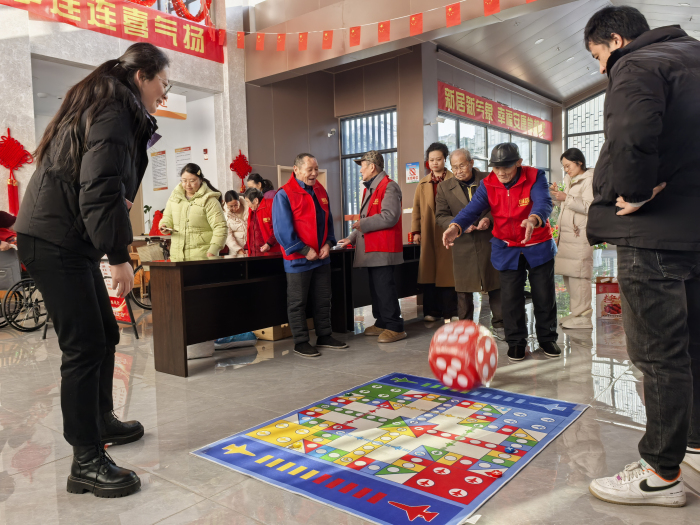 活动开始前,工作人员对活动现场进行了装饰,处处充满了节日的氛围。本次活动为老人们设置了3个趣味小游戏:1、扎转盘:给每位老人发5个球,扔出的球粘住环数积分,结束可用积分兑换奖品。2、飞行棋:每轮4位老人参加,老人们负责掷骰子,工作人员代走棋子,获胜者可领取奖品。3、趣味套圈:给每位老人发5个圈,套中可领取相应的奖品。