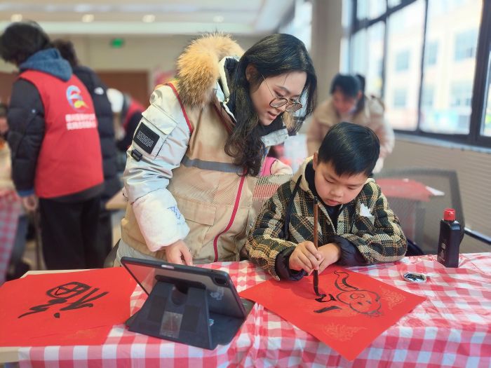 活动伊始,南通大学的志愿者们生动地讲解了春节的由来和习俗,从辛亥革命后公历的引入,到1949年新中国正式将农历正月初一定名为“春节”,再到家家户户贴春联、放鞭炮等习俗,让孩子们对春节有了更深入的了解。随后,志愿者们启发孩子们以“蛇”为创意元素,绘制可爱的蛇形福字。孩子们拿起毛笔,发挥想象,将蛇的灵动身姿与福字巧妙结合,创作出一幅幅充满童趣和创意的作品。(余水兰、黄锦杰)