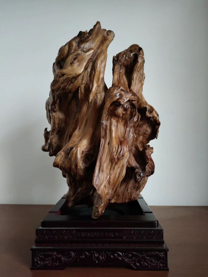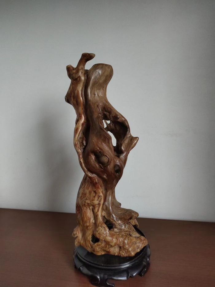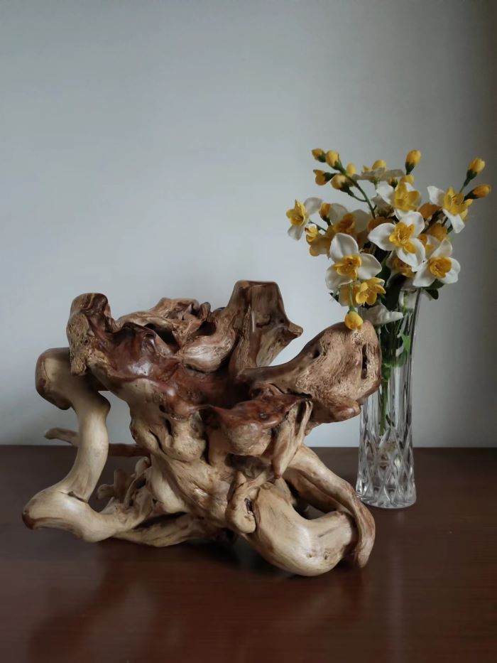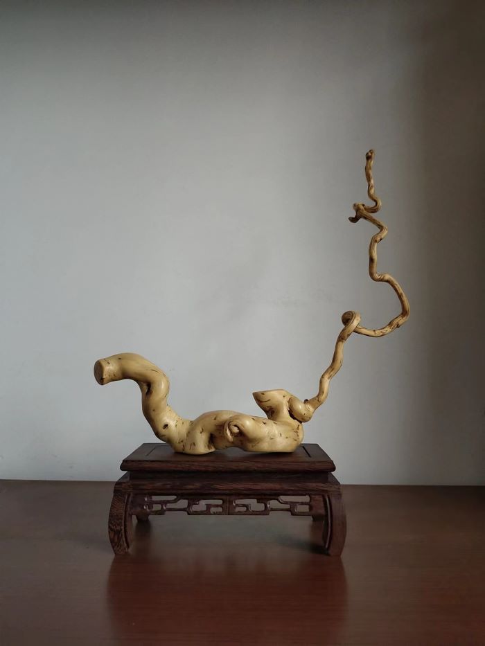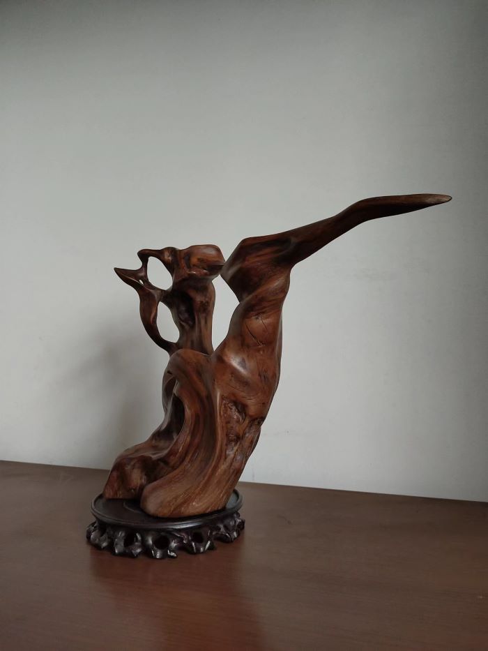根艺在从多艺术门类中以其自然,巧妙,厚重,淳朴,柔情,深受大众喜爱。是书房,茶室,客厅,不错的摆件。被誉为大众艺术。根材资源易求,小区居民废弃的花木盆景枯木朽根都是很好的选材。根的艺术来自大自然,考验着制作者的灵感与悟性,七分自然三分巧工。在凌乱的枯木朽根之中寻找奇与巧,形与境,韵与美。精心雕琢,先粗后细打磨至肌肤般柔软。枯木朽根,涅槃重生。现呈花甲之年的部分习作,供社区同仁目赏。(王建明)