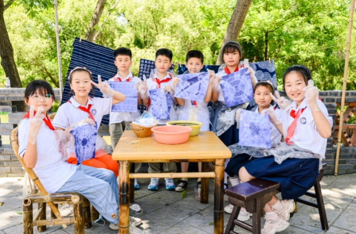乡村六月好风光,绿树浓荫碧水淌。在这仲夏时节,宜兴市桃溪小学“小米乐”劳动教育微课程建设的近二十名少先队员,在学校德育处的组织带领下,走进学校施教区——张渚镇东龙村鱼桥,学习扎染、为家乡特产包装书写,助力东龙村参加的环球体育省特色田园乡村建设第九批次现场展示活动,为乡村振兴增添一抹红领巾生动色彩。