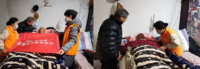 在这些慰问的对象中,陈林元爷爷是九如城的一位居家养老服务对象,中午时分工作人员端着热气腾腾的五福汤圆来到陈爷爷家中,见有人来看望他,陈爷爷面带微笑,精神状态饱满。陈林元小儿子正好在老人家中,看见工作人员上门拜访老父亲也非常开心,他说前两天你们九如城服务员上门服务时给老人喂饭,帮家里打扫,也真心不容易,也正是有了你们每月的上门服务,才使得他九十五岁卧床的父亲生活便利了很多,不仅家中清爽干净,让人看着心情舒畅,老人也没有因为年事高行走不便而影响生活,反而在九如城服务人员的细心服务和精心照护生活充实,心态也积极阳光。在工作人员离开的时候老人很感激,一个劲的感谢九如城为了老人尽心尽力,让老人感到幸福温暖。