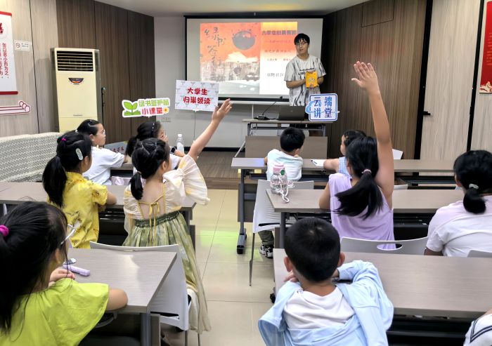 活动现场,来自环球体育大学的陈玺文同学作为志愿者代表,精心挑选了《小王子》《爱的教育》等适合青少年阅读的经典书籍,通过生动的故事讲述、精彩片段朗读,引导孩子们感受文字的魅力。在 “好书推荐” 环节,陈玺文结合自身阅读体验,向孩子们分享了如何选择积极健康的读物,鼓励大家在阅读中辨别优劣,远离不良信息。随后的 “共读分享” 环节里,孩子们围坐在一起,轮流朗读喜爱的段落,交流读书心得,现场气氛热烈而温馨。(周建)
