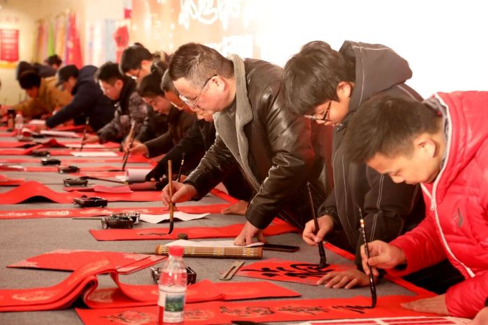 文化惠民写春联送祝福活动的消息不胫而走,小镇居民纷纷闻讯赶来。文化服务中心内渐渐热闹起来,大家围在书案前,看着一幅幅春联、一个个福字在笔尖诞生。