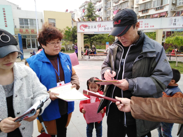 4月12日下午,徐州市云龙区骆驼山街道阳光社区的平安志愿者们在社区许凤琴书记带领下,来到社区中心广场开展“扫黑除恶专项斗争”宣传活动。