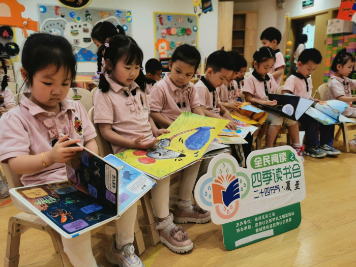 为进一步培养辖区幼儿的阅读兴趣,倡导全民阅读风尚,以“节气之美”打开一扇通向传统文化的窗口,6月20日下午,南通市崇川区新城桥街道启秀社区关工委、妇联、工会、团工委联合城山幼儿园开展“蝉鸣夏至到 ‘绘’读伴成长”主题阅读活动。