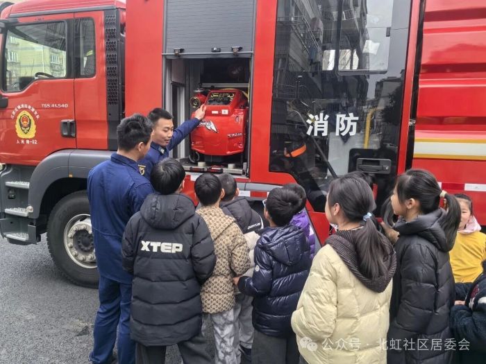 随后,消防员带领青少年近距离参观消防车,详细讲解车内各类消防器材的名称、功能和使用场景,满足了孩子们对消防工作的好奇心。